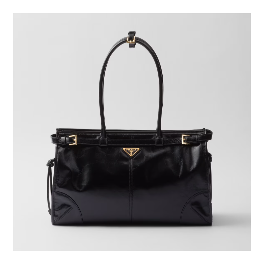 최고퀄리티 320000 Size:38x30x12cm 다양한 활용성과 모던한 매력을 강조하는 광택 마감의 부드러운 가죽으로 제작된 실용적이고 세련된 핸드백입니다. 다양한 영향을 하나의 스타일에 결합한 기하학 디자인이 특별하면서도 세련된 아름다움을 연출합니다. 세련된 스트랩 디테일이 장식된 직사각형 디자인으로 지퍼 포켓이 달린 넉넉한 내부가 특징입니다. 에나멜 메탈 트라이앵글 로고로 아이코닉한 시그니처 룩이 완성됩니다.