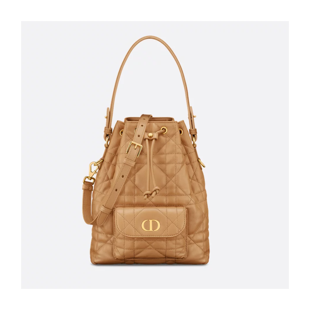 size:15*19*8.5cm 2025 가을 시즌에 새롭게 선보이는 모던하고 우아한 스타일의 Dior Caro 버킷백입니다. 매크로까나쥬 스티칭으로 장식한 블랙 양가죽 소재로 제작되었으며, 넉넉한 드로우스트링 수납공간이 특징입니다. 골드 피니시 메탈 CD 시그니처 장식의 앞면 플랩 포켓에는 작은 데일리 소지품을 모두 보관할 수 있습니다. 탈착식 탑 핸들 및 길이 조절 가능한 탈착식 스트랩으로 완성된 스몰 백으로 핸드백, 숄더백, 크로스백으로 연출하기 좋습니다.