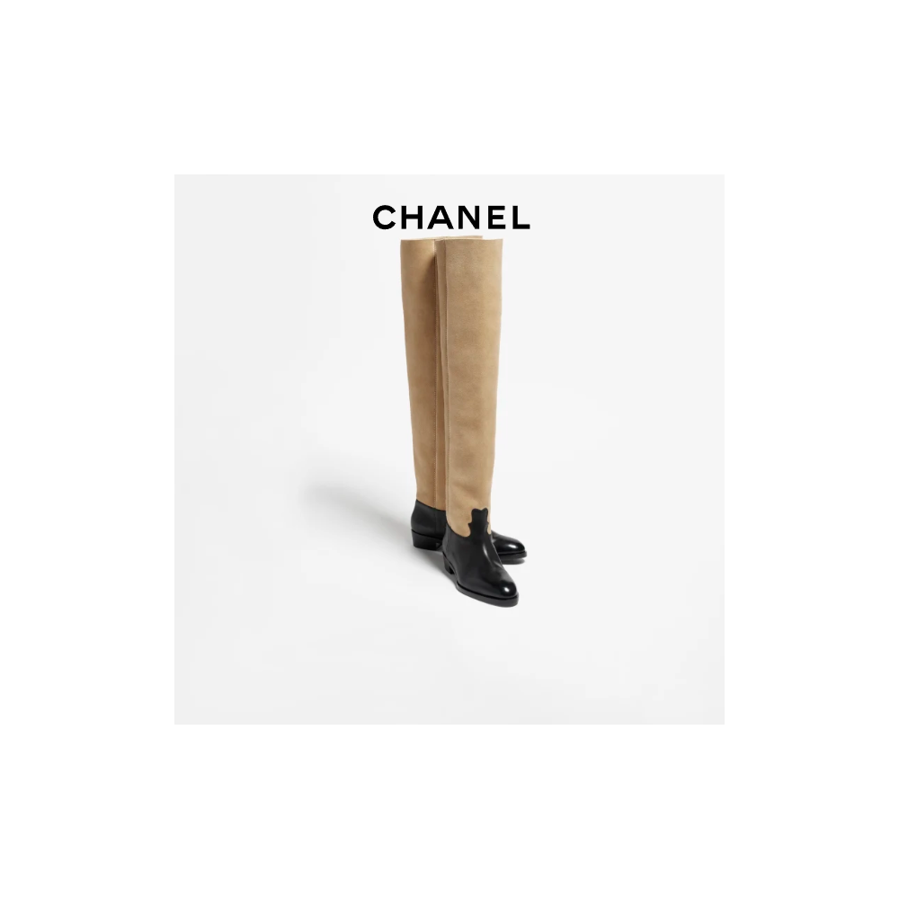 Size:35-41 2024/25 공방 컬렉션은 샤넬이 소중히 여긴 대조의 미학을 강조하며 하우스의 상징적 팔레트를 지닌 투톤 부츠를 다양한 텍스처로 선보입니다.