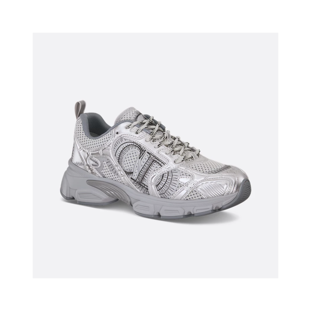 SIze:35-40 40-45 러닝 슈즈를 디올 하우스의 꾸뛰르 코드로 재해석한 Dior Chrono 스니커즈입니다. 그레이 컬러의 메시 소재와 실버 톤 래미네이트 레더-이펙트 패널로 제작되었으며 옆면의 CD 시그니처, 슈텅의 별 패치, 뒷면의 Dior 시그니처와 같은 홀마크 디테일이 돋보입니다. 쓰리-톤 슈레이스와 별 디테일의 초경량 솔로 완성된 스니커즈로 모든 시즌 캐주얼한 룩을 완성하기 좋습니다.
