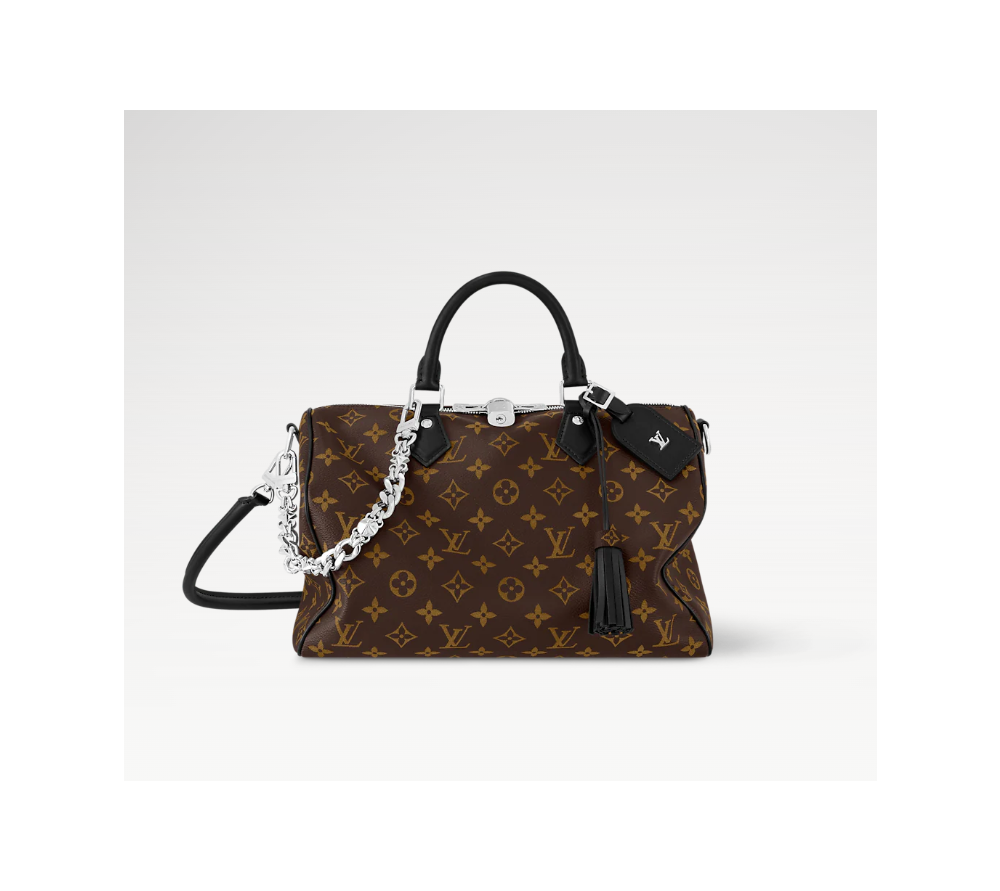 30 x 21 x 17 cm 상품번호:M12243 완벽한 여행 동반자가 되어줄 강렬한 스피디 소프트 30 다크. 하우스의 아이코닉한 모노그램 코팅 캔버스 소재. 블랙 색상 가죽 소재의 트리밍 및 대담한 고딕 스타일의 체인이 특징. 네임 택과 태슬 장식을 더한 세련되고 넉넉한 디자인. 여권과 중요한 소지품을 안전하게 보관할 수 있는 지퍼형 내부 포켓. 하우스 고유의 감성을 더해주는 새로운 숄더 토론 핸들.
