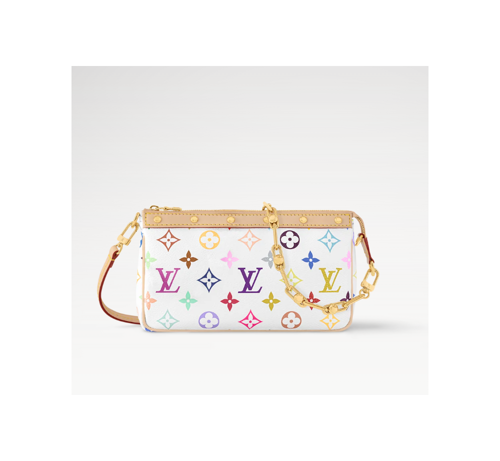 22 x 13 x 4 cm 상품번호:M13404 클래식한 디자인에 멀티컬러 모노그램 모티프를 더해 유쾌하게 재해석한 포쉐트 악세수아. 다양한 카테고리를 넘나드는 루이 비통 x 무라카미 컬렉션에서 선보이는 아이템. 코팅 캔버스 소재의 작은 파우치 실루엣. 하우스의 시그니처 감성을 더하는 천연 카우하이드 가죽 소재의 트리밍. 감각적이고 우아한 포인트를 더하는 골드 색상의 하드웨어. 탈착 가능한 스트랩과 체인을 활용하여 다양하게 스타일링 가능한 아이템.