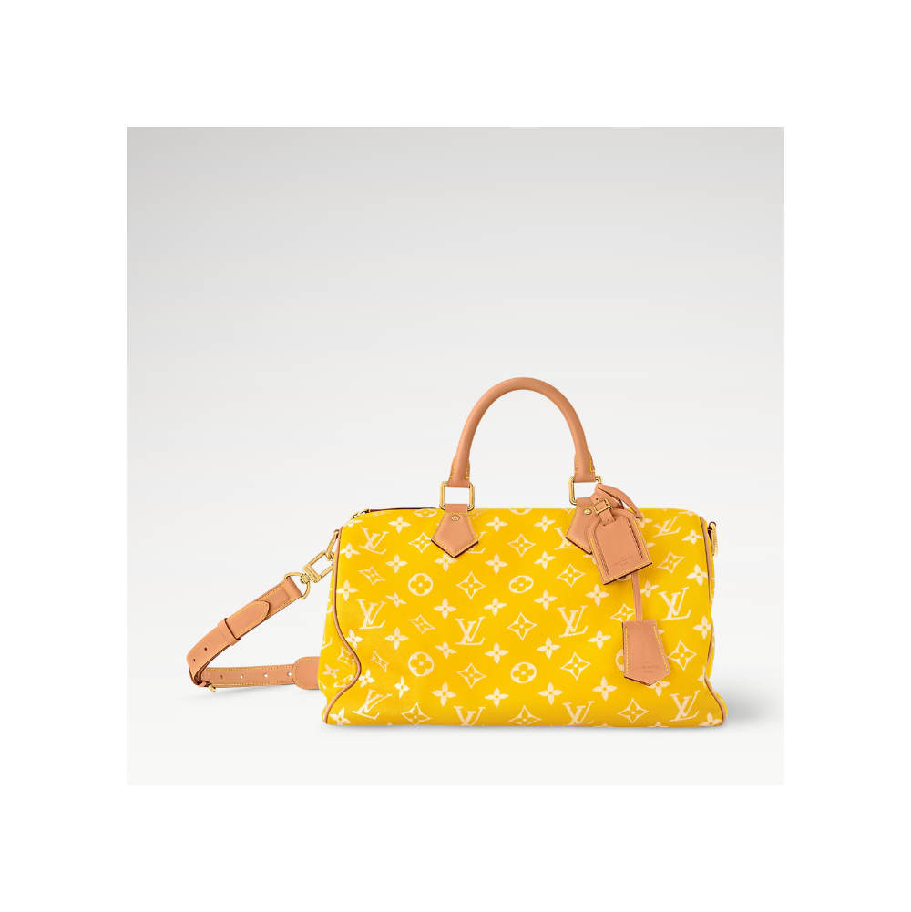 40 x 26 x 23 cm 상품번호:M24419 자연적으로 유연한 그레인 카프스킨 소재를 사용하여 매우 부드러운 촉감을 선사하는 크리에이티브 디렉터 퍼렐 윌리엄스의 Speedy P9 반둘리에 40. 가죽 소재에 첨단 실크 스크린 기법으로 모노그램 패턴을 프린트하여 모노그램 캔버스 특유의 흐릿한 효과를 완벽하게 재현한 디자인. 아주 고급스러운 램스킨 가죽 소재의 전체 안감.