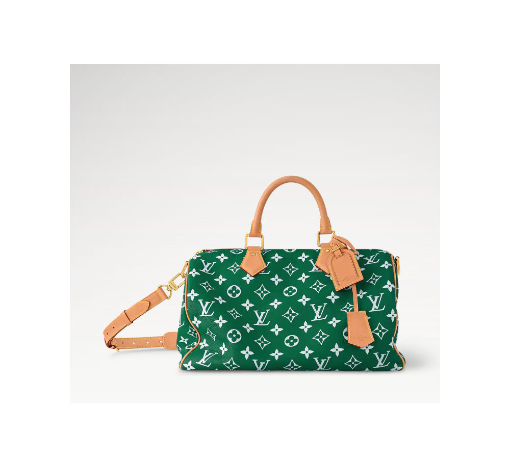 40 x 26 x 23 cm 상품번호:M24417 자연적으로 유연한 그레인 카프스킨 소재를 사용하여 매우 부드러운 촉감을 선사하는 크리에이티브 디렉터 퍼렐 윌리엄스의 Speedy P9 반둘리에 40. 가죽 소재에 첨단 실크 스크린 기법으로 모노그램 패턴을 프린트하여 모노그램 캔버스 특유의 흐릿한 효과를 완벽하게 재현한 디자인. 아주 고급스러운 램스킨 가죽 소재의 전체 안감.