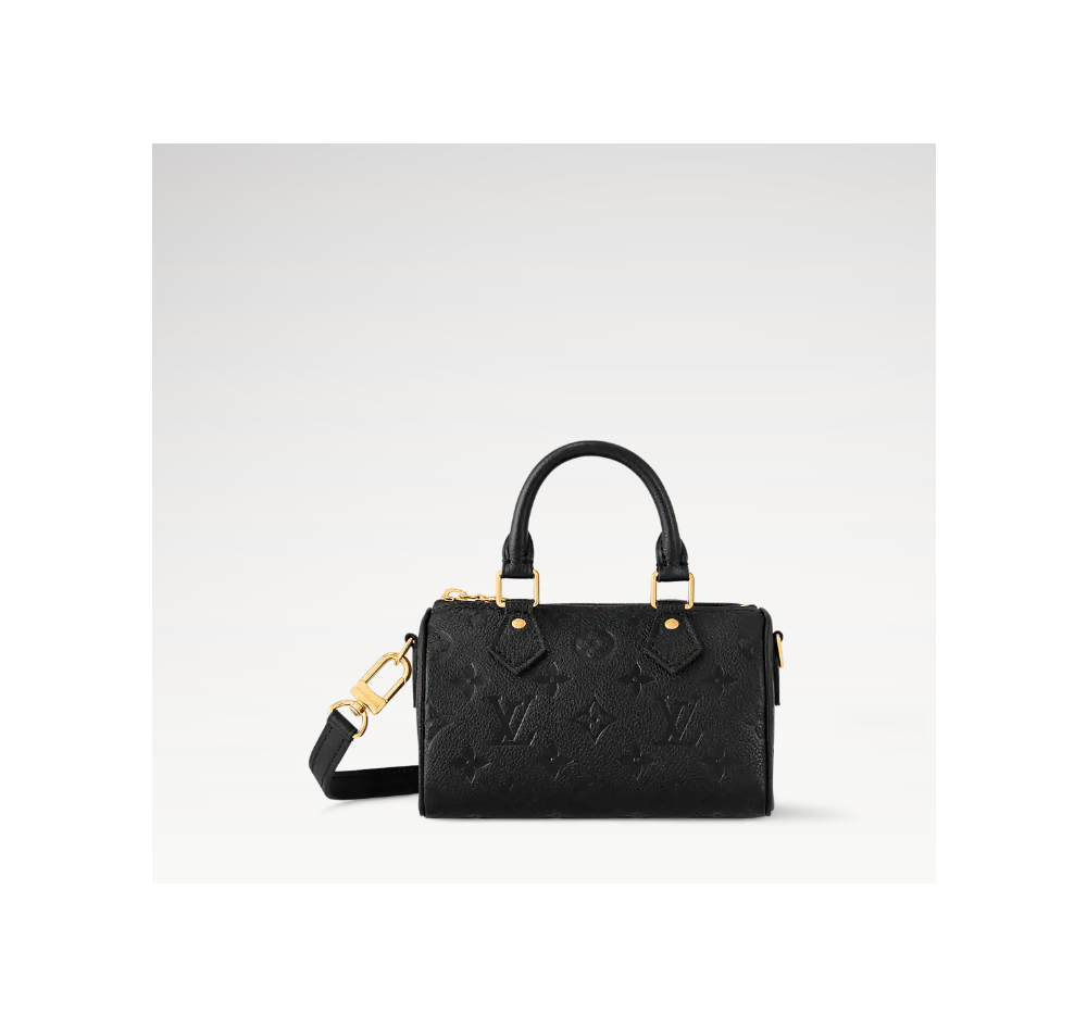 16 x 10 x 7.5 cm 상품번호:M82450 상징적인 스피디 백을 미니어처 버전으로 재현한 나노 스피디(Nano Speedy). 모노그램 패턴을 양각으로 새긴 모노그램 앙프렝뜨 가죽 소재. 유연한 그레인 가죽 소재와 인체 친화적이고 둥근 실루엣이 결합된 디자인. 다양하게 연출할 수 있는 두 개의 상단 핸들, 탈착 및 조절 가능한 숄더 스트랩.